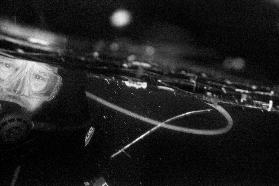 Although separated by the surface of the ocean, the two men are entirely dependent on each other to complete their jobs.